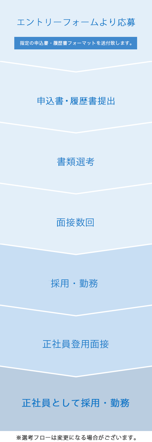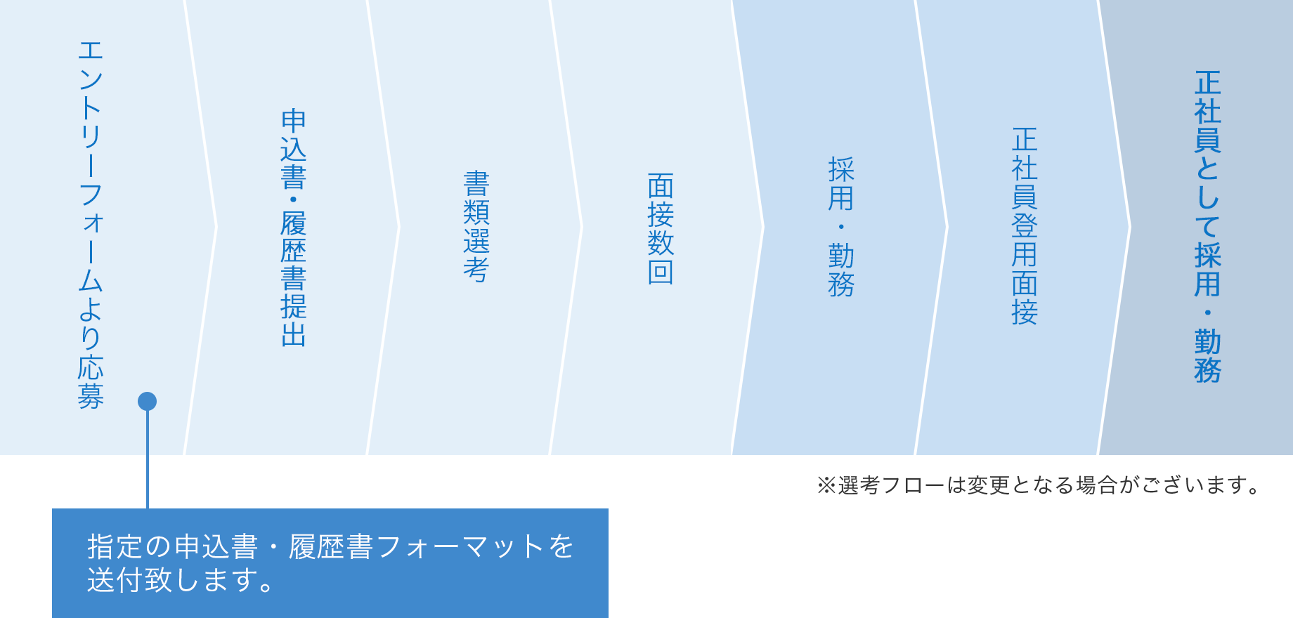 | 選考内容 | 通常の中途採用と同様に書類選考、面接等により行います。 |